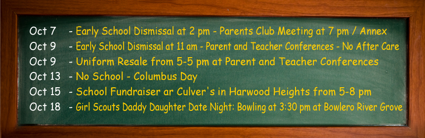 Read more »Join St. Celestine School at our Culver’s Fundraiser in Harwood Heights on Wednesday, October 15 from 5 pm to 8 pm – 15% of event sales will be donated! – Show the flyer to the cashier when ordering at the restaurant! – Also, join the St. Celestine Parents’ Club for Halloween Fun at 6 pm at the Culver’s Fundraiser!