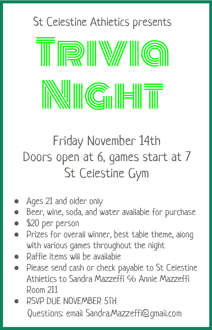 Please contact the Athletic Director with any questions at athleticdirector@stcelestineschool.org.