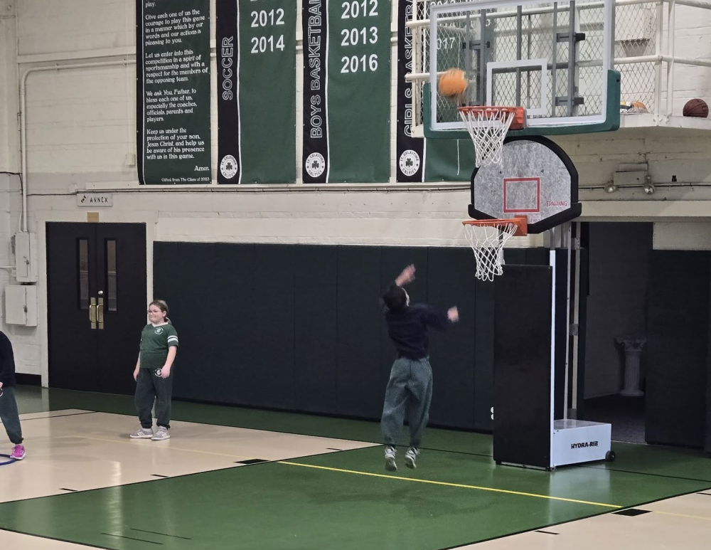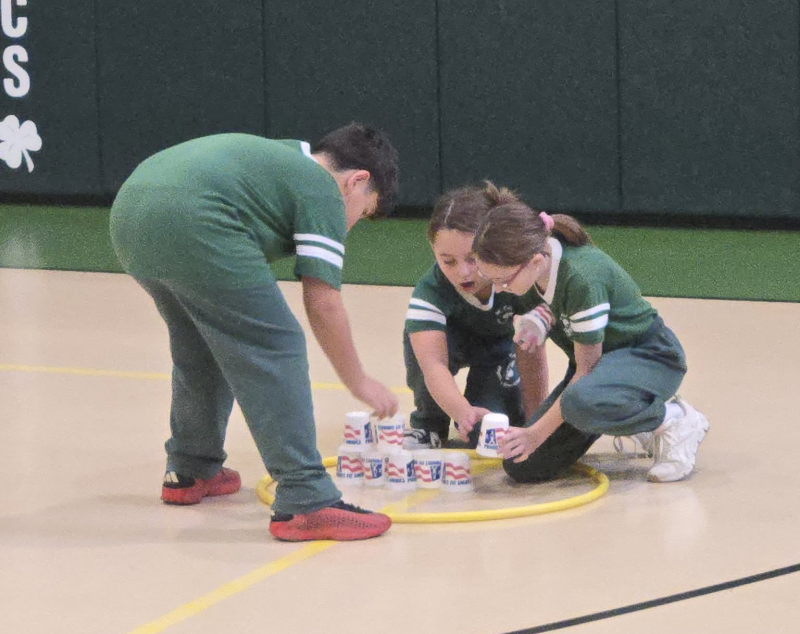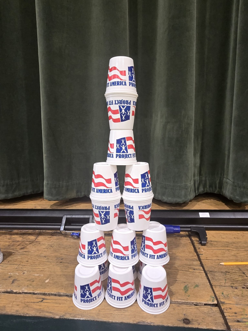 What happens when you combine S.T.E.M. abd Basketball? You get Build a Pyramid game! – 4th Grade Students worked on shooting baskets to earn cups to build their team pyramid. Great teamwork and practice!