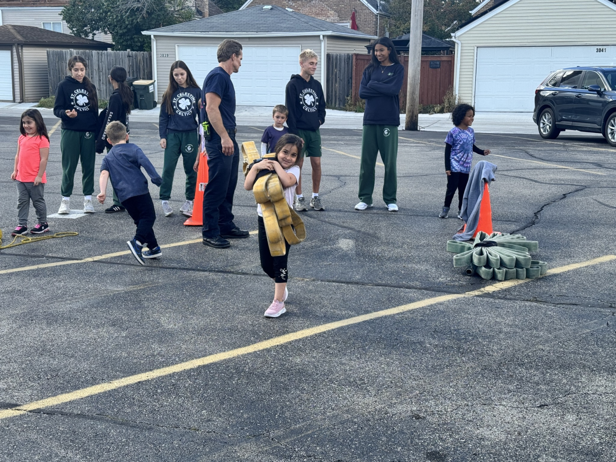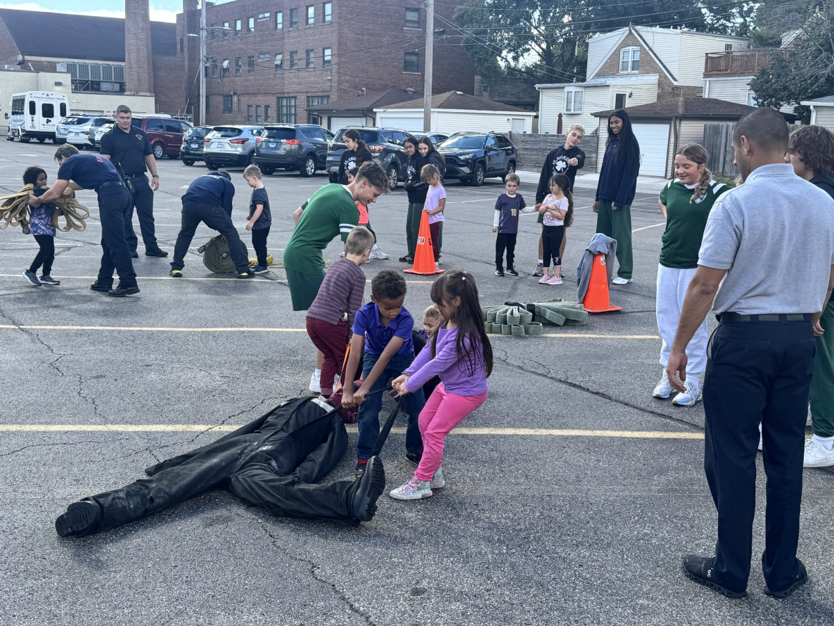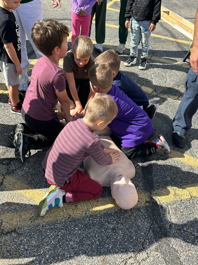Sound the alarm – we had a blazing good time with our special visitors from the Elmwood Park Fire Department! – Students sprayed the hose like pros, rescued a dummy in distress, gave CPR a try, and got an up-close look at all the cool gear. Big shoutout to our local heroes for bringing the fun while teaching us some important fire safety!