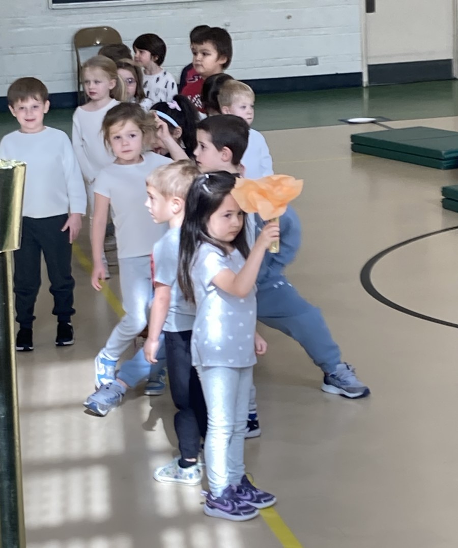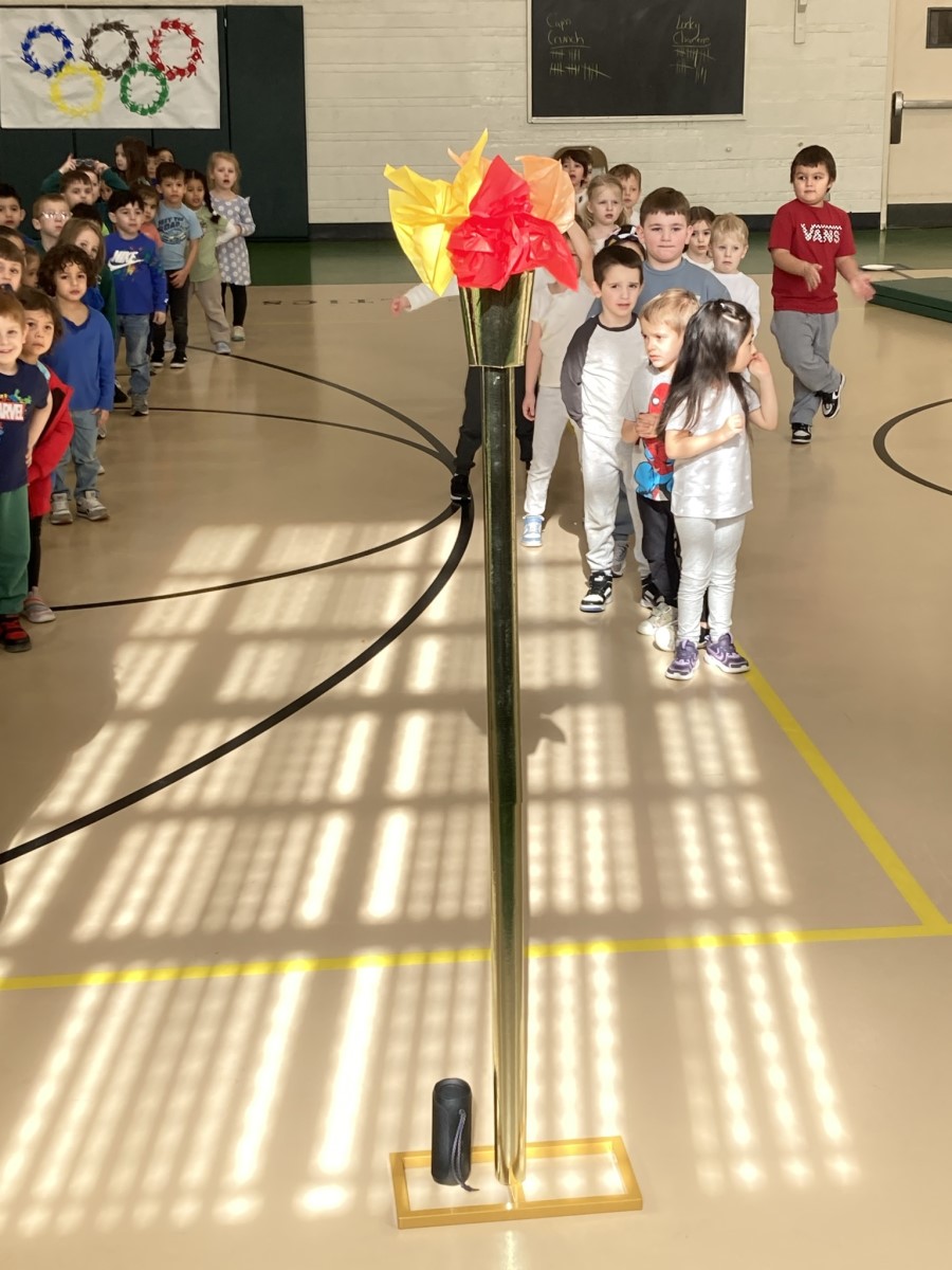 Our preschool and kindergarten athletes kicked off their very own Winter Olympics! We held an opening ceremony complete with the passing of the torch, the national anthem, and an Olympic oath all about trying our best and being good sports.